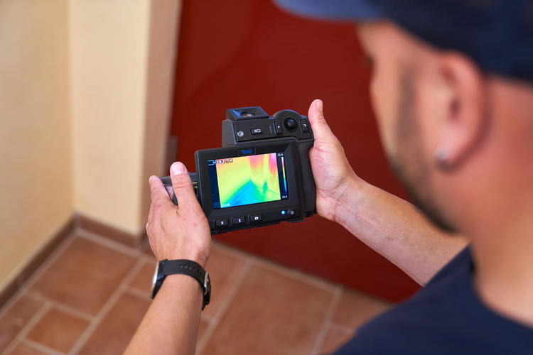 Mit Wärmebildkameras werden Temperaturunterschiede an Bauteiloberflächen sichtbar gemacht. Ideal zur Ortung von Warmwasserlecks oder bei Fußbodenheizungen.